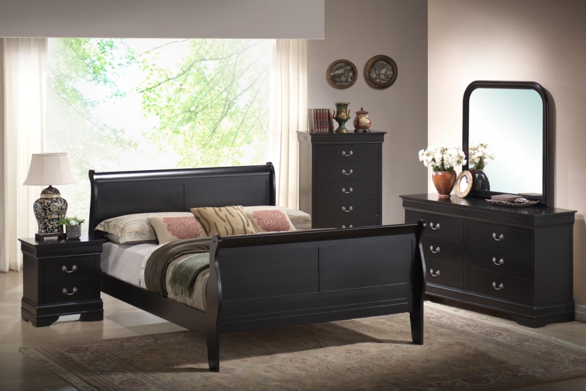 Myco Furniture LP6700-K 76 x 90 x 44 in. Louis Philippe King Size Bed, Black