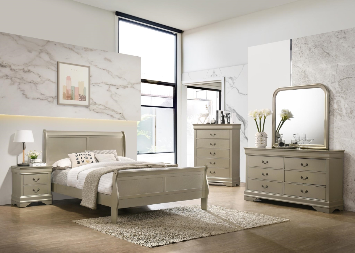 Myco Furniture LP801-Q 82 x 63 x 47 in. Louis Philippe Queen Size Bed, Gold