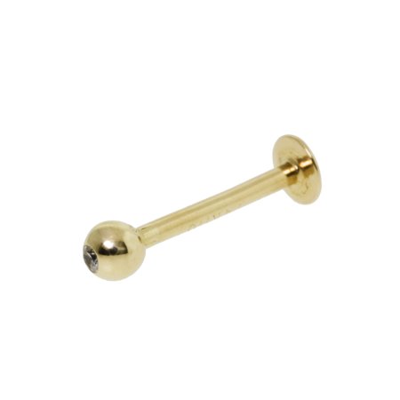 16 Guage, 3/8" Internally Threaded CZ 3mm Ball Labret in 14k Yellow Gold