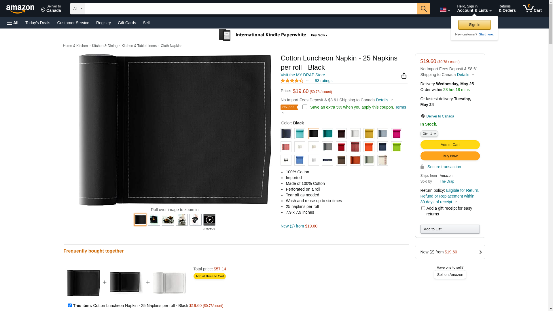 Cotton Luncheon Napkin - 25 Napkins per roll - Black