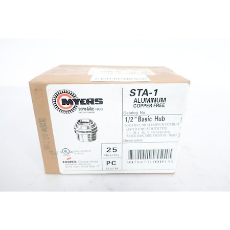 As an Amazon Associate, we earn from qualifying purchases. Myers Myers . STA-1 Gallery Attributes Brand name, Manufacturer name, Manufacturer, Extra Product NameMyers Attribute00, countryOfOriginUnknown AttributeKey00Country of Origin (subject to change) DimensionUnitinch GraingerSku890872 UPCNone WeightUnitlbs extendedLead7 extendedQty-2 jsonUrlData924526ffbdad25e5923b moq, multiple, tierMinQty11 MPNSTA-1 qtyInStock0 qtyInStockOverrideDrop Ship SKUG904661014 tierPrice1322.89 urlhttps://www.zoro.com/myers-box-of-25-basic-hub-aluminum-12in-conduit-fitting-sta-1/i/G904661014/ Distributor offers SellerSKUMOQIn stockMultiplePrices ZoroG904661014111 @ $322.89