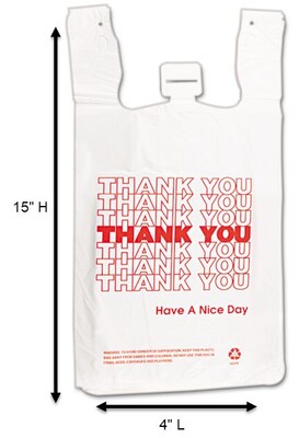 Myers Barnes Associates Thank You Shopping Bags, 15" x 4", White, 2000/Carton (BPC6415THYOU) | Quill.com
