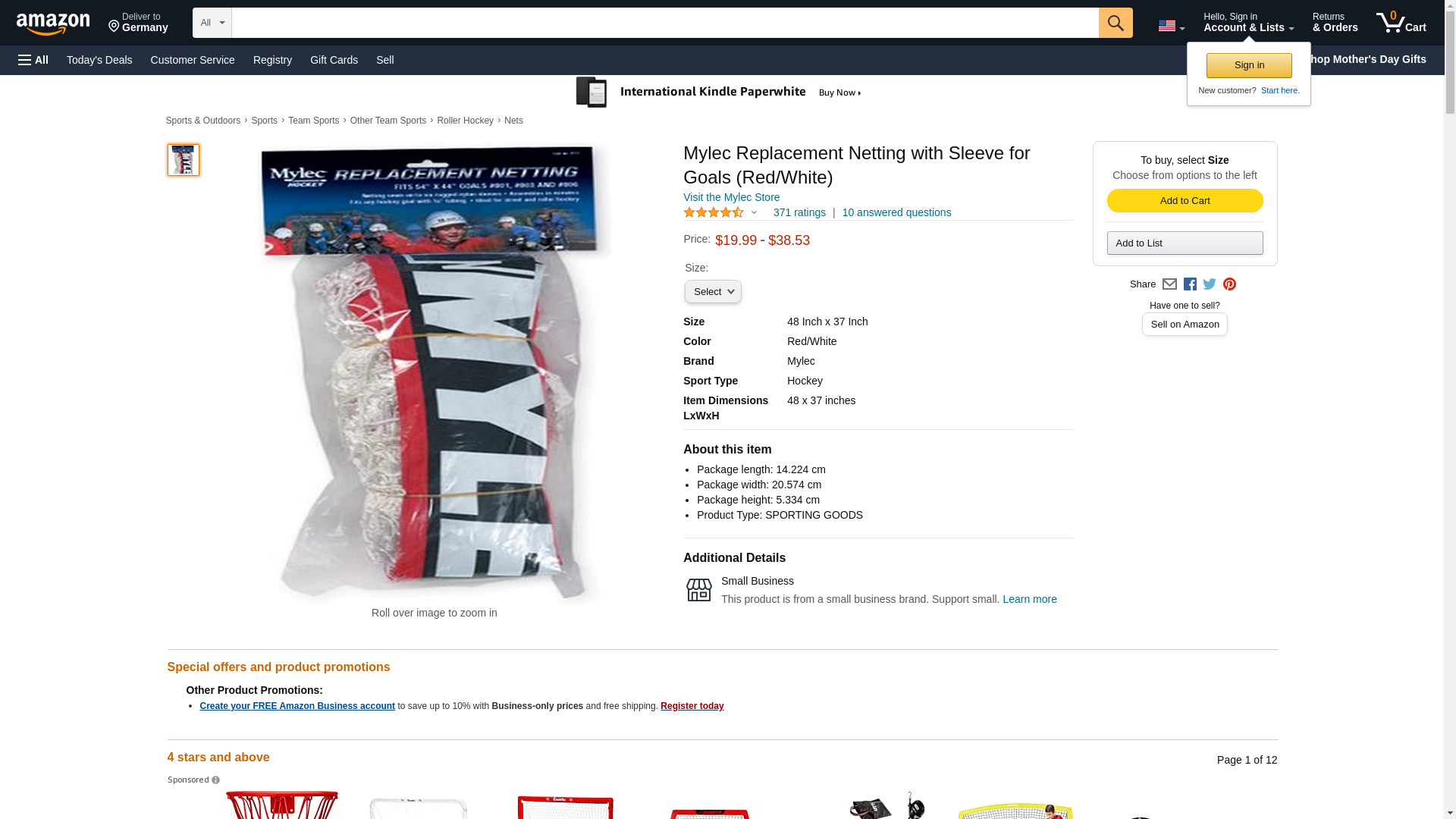 Mylec 1304855 44 x 54 x 24 in. Replacement Net with Sleeves