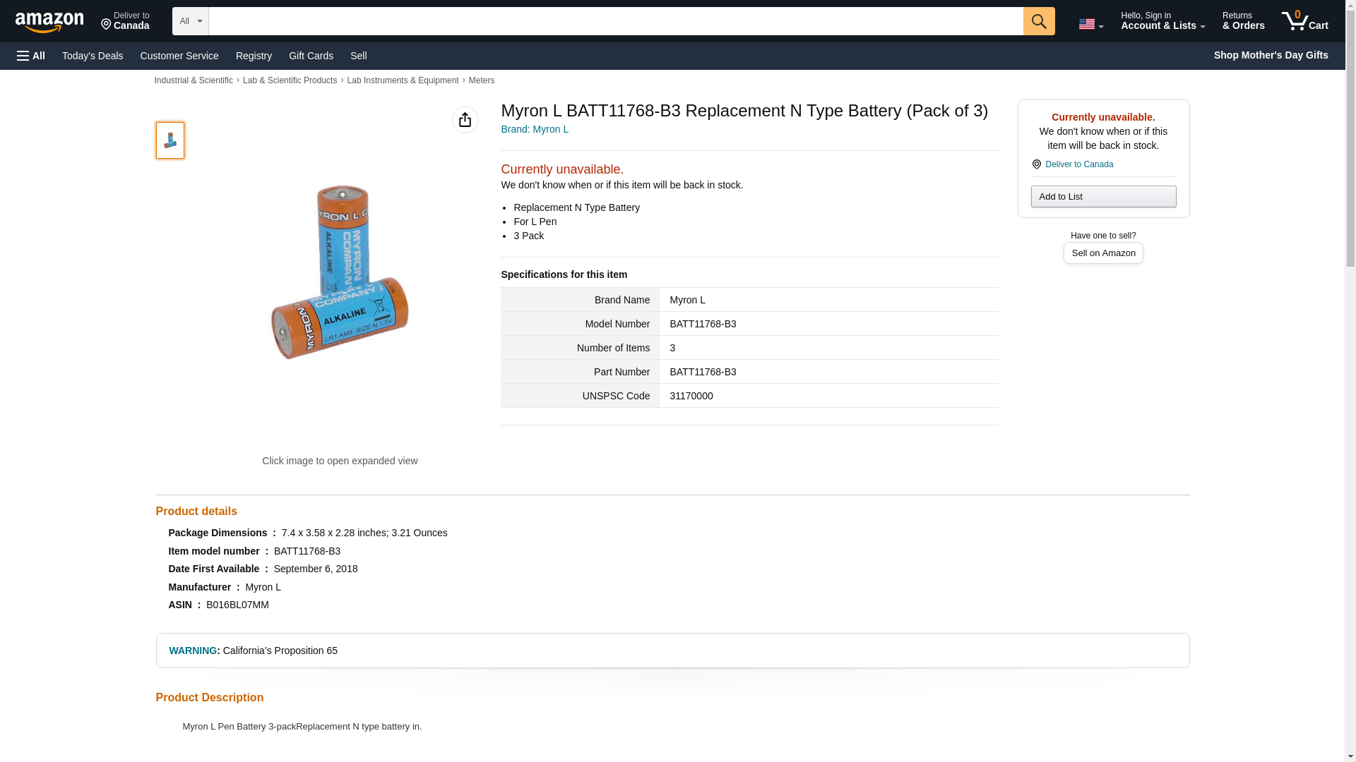 MYRON L CO . BATT11768-B3