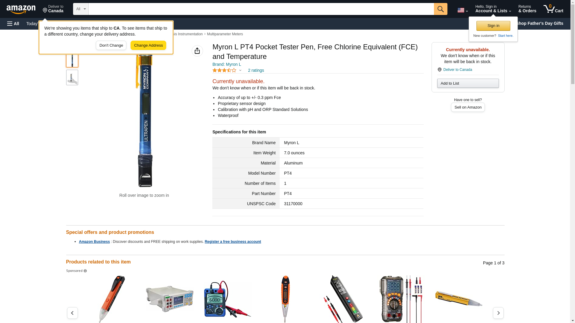 Myron L PT4 Pocket Tester Pen, Free Chlorine Equivalent (FCE) and Temperature