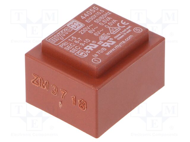 MYRRA 44055 TRANSFORMER, 1VA, 230V, 2 X 6V (100 pieces)