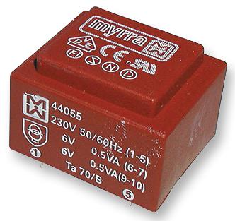 MYRRA 44159 TRANSFORMER, 2.3VA, 230V, 1 X 12V (10 pieces)