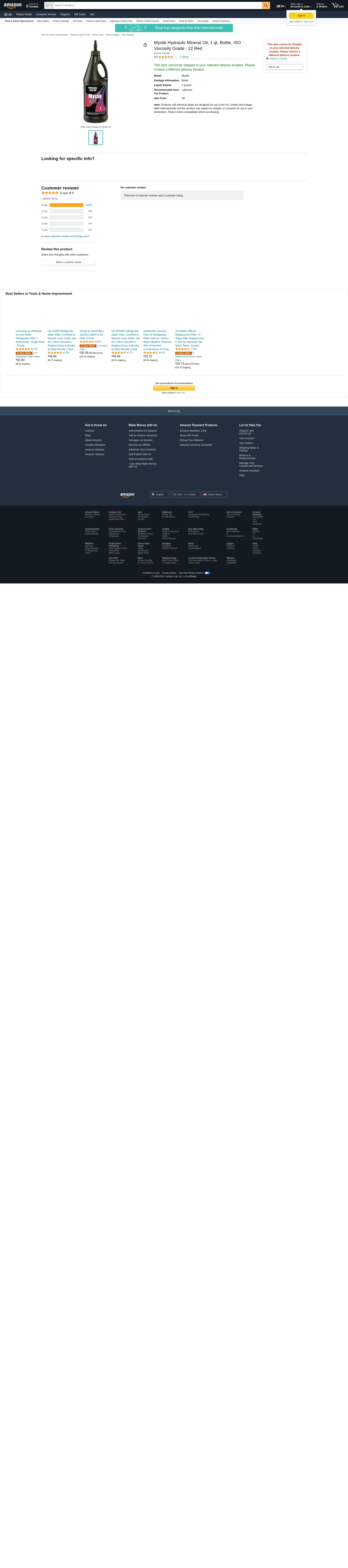 Mystik Hydraulic Mineral Oil, 1 qt. Bottle, ISO Viscosity Grade : 22 Red