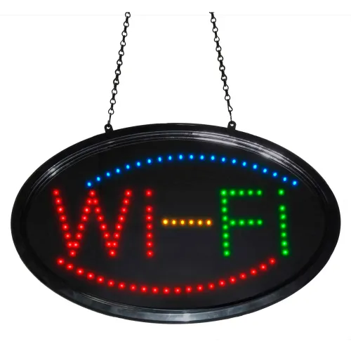 This eye catching Wi-Fi sign features energy-efficient, bright red, blue, amber and green LEDs and is a perfect fit for any business.