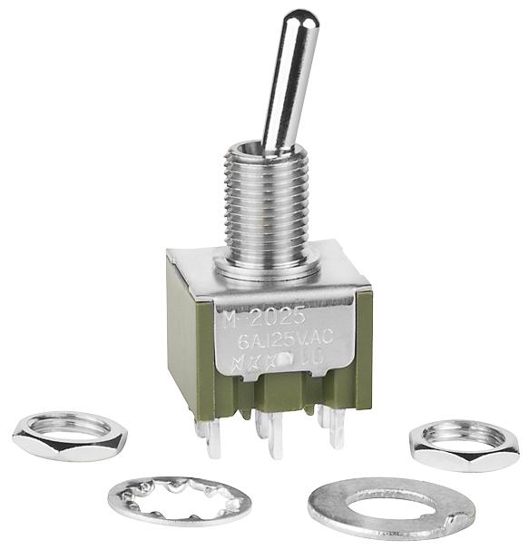NKK Switches - M2025SS1W01 - Switch, Toggle, DPDT, ON-NONE-(ON), ..413" Bat Actuator, 6A, 125VAC, Solder - Allied Electronics & Automation, part of RS Group