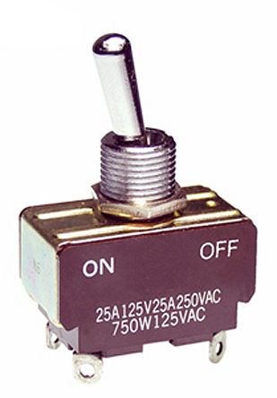NKK Switches - S421 - Switch, Toggle,DPST,ON-NONE-OFF,Non-Illum,17.50mm Actuator,25A,125VAC,Solder - Allied Electronics & Automation, part of RS Group