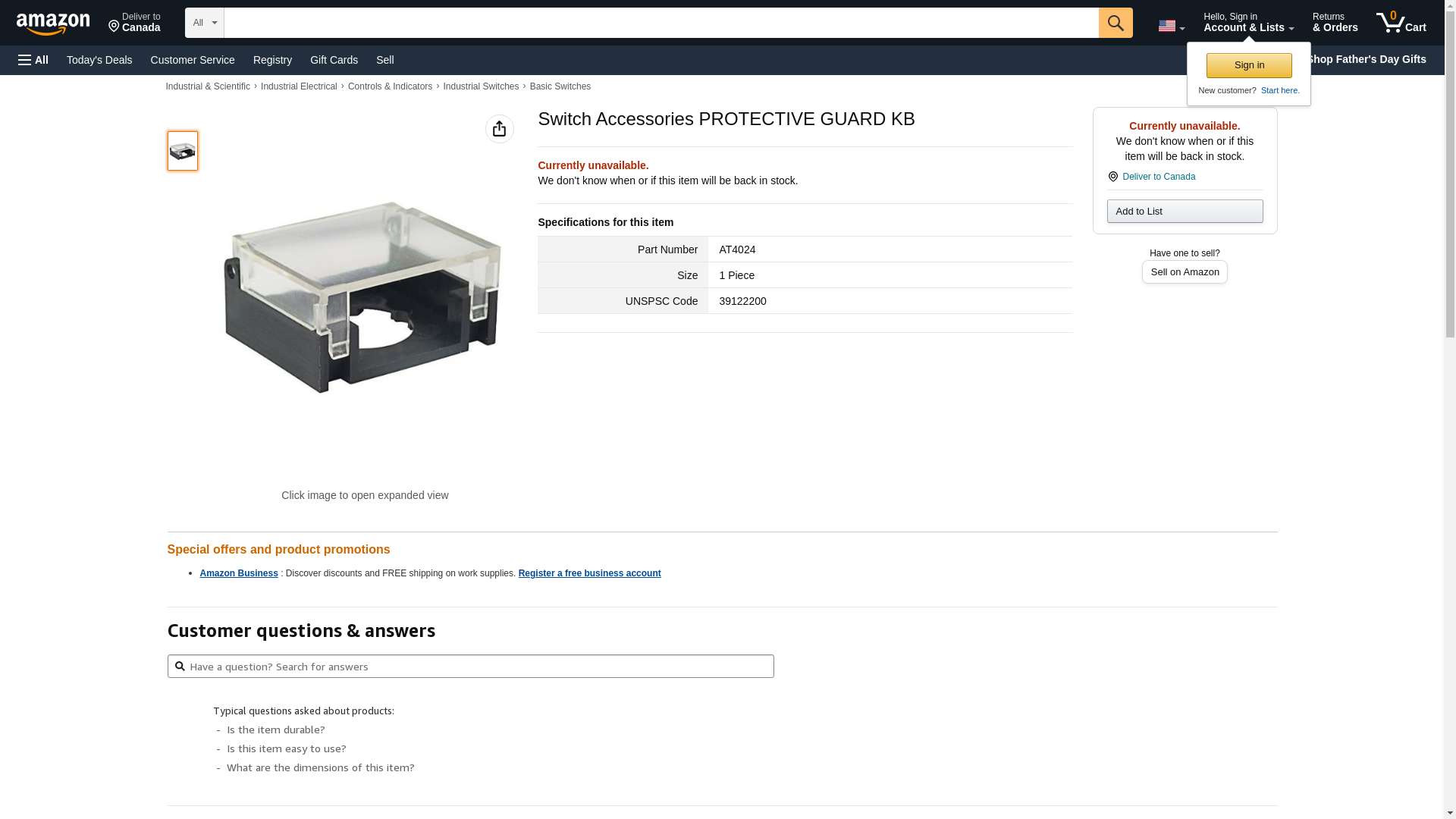 NKK Switches - AT4024 - Accessory, Pushbutton Protective Cap, Plastic, Rectangle, Series KB - Allied Electronics & Automation, part of RS Group