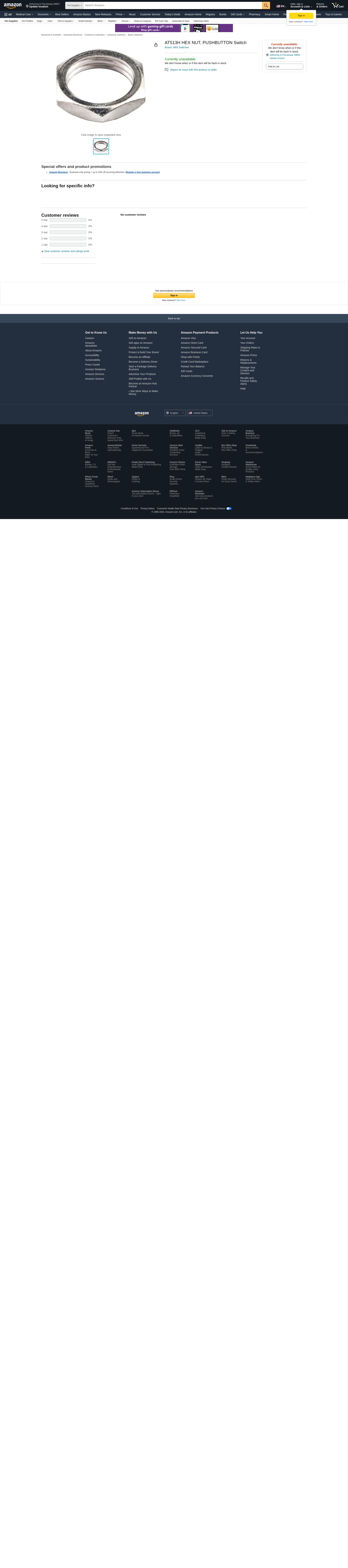 NKK SWITCHES AT513H HEX NUT, PUSHBUTTON SWITCH