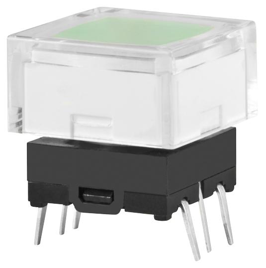 NKK Switches - JB15LPF-JF - Switch,Sealed,Tactile,SPST,OFF-(ON),Illum,Grn LED,Clr/Grn Cap,0.05A,24VDC,Str PC - Allied Electronics & Automation, part of RS Group