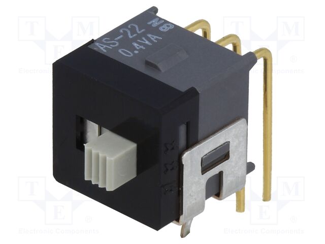 AS22AH,Switch Slide ON None ON DPDT Side Slide 0.1A 28VAC 28VDC 0.4VA 50000Cycles PC Pins Bracket Mount/Through Hole (10 Items)