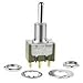 | Feature | <b>Price For:</b> Pack of 5 <b>Manufacturer</b>: NKK Switches <b>Product Category</b>: Toggle Switches <b>RoHS</b>: <b>Contact Form</b>: SPDT <b>Switch Function</b>: ON - OFF - ON <b>Current Rating</b>: 100 mA <b>Voltage Rating AC</b>: 28 V <b>Voltage Rating DC</b>: 28 V <b>Power Rating</b>: 0.4 VA <b>Termination Style</b>: Solder Lug <b>Mounting Style</b>: Panel <b>Bushing Size</b>: 1/4-40 <b>Actuator</b>: Bat <b>Terminal Seal</b>: Sealed <b>Contact Plating</b>: Gold |