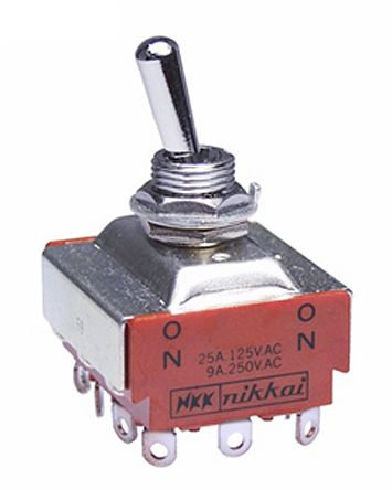 NKK Switches - S42 - Toggle Switch,4PDT,ON-NONE-ON,Non-Illum,17.50mm Actuator,20A,125VAC,Solder - RS
