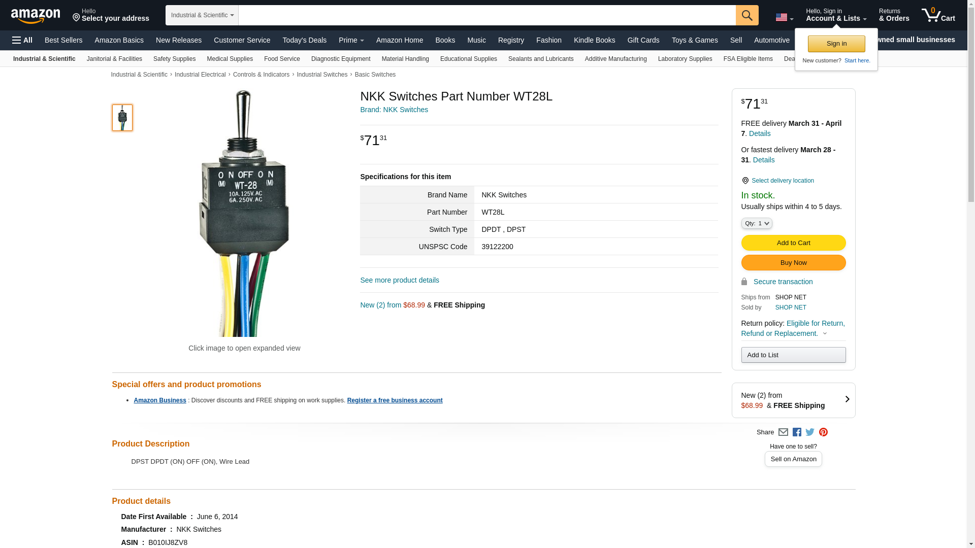 | Feature | <b>Price For:</b> Each<b>Order Unit:</b> Each\xa01 <b>Actuator Style:</b>: Toggle <b>Contact Configuration:</b>: DPDT <b>Contact Current Max:</b>: 10 <b>Contact Voltage AC Nom:</b>: 125 <b>Contact Voltage DC Nom:</b>: 30 <b>Product Range:</b>: - <b>SVHC:</b>: To Be Advised <b>Switch Mounting:</b>: Panel <b>Switch Operation:</b>: (On)-Off-(On) <b>Switch Terminals:</b>: Wire Leaded |