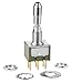 DPDT ON OFF ON, .201" Dia. Locking Lever, Threaded with Keyway for Lever Lock, Gold Rated 0.4VA max. @ 28V AC/DC max., .250" Straight PC