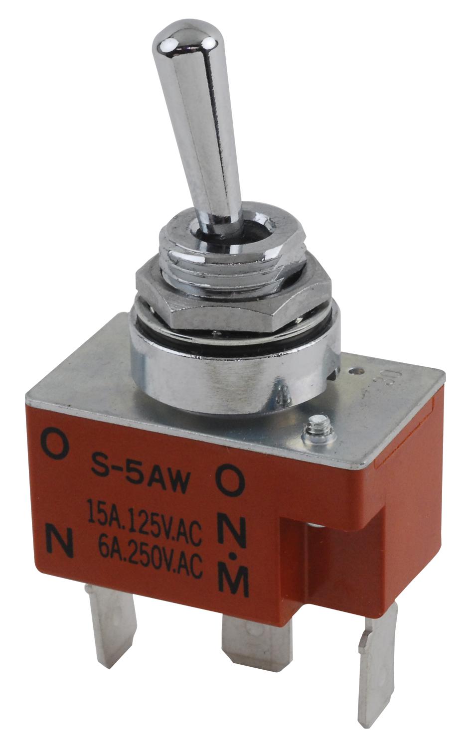 NKK Switches - S5AWF - Switch,Toggle,Sealed,SPDT,ON-NONE-(ON),Non-Illuminated,17.50mm Act,15A,125VAC,QC - RS