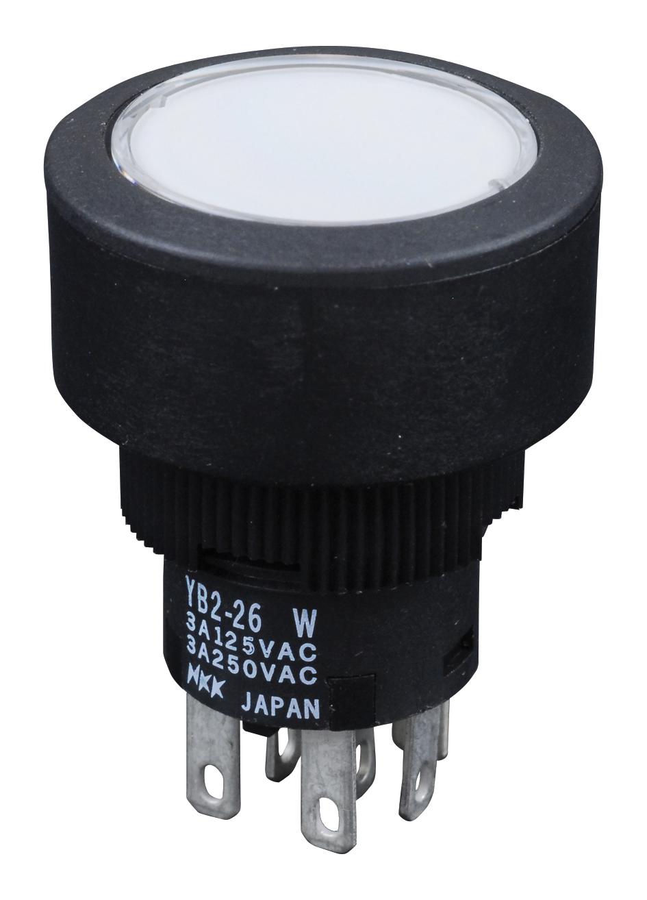 Nkk Switches Switch, Pushbutton, Illuminated, Dpdt, 3A, 250V, Amber - YB226CWCKW01/CUL-5D-JB