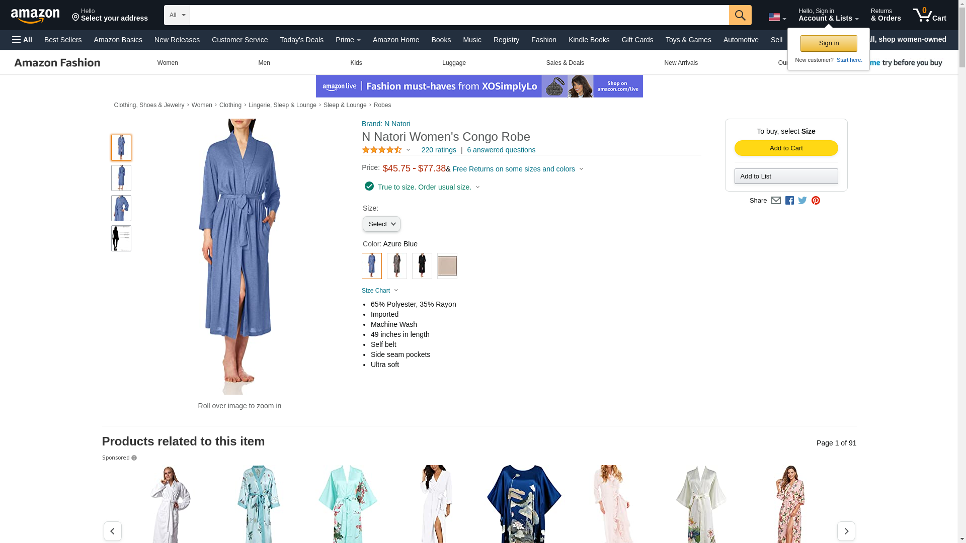 N Natori womens Congo bathrobes, Azure Blue, Small US