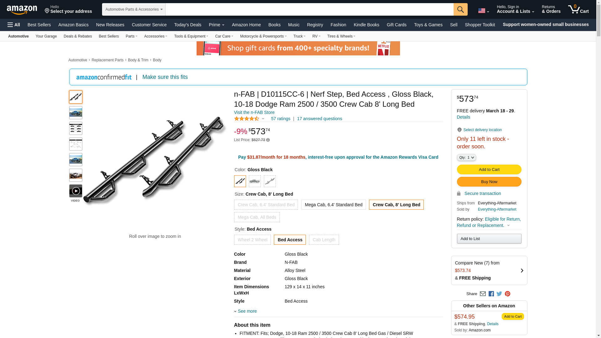 | Feature | Nerf Step Bar Wheel To Wheel w/Bed Access; Black Powder Coated; 3 in. Tube; |