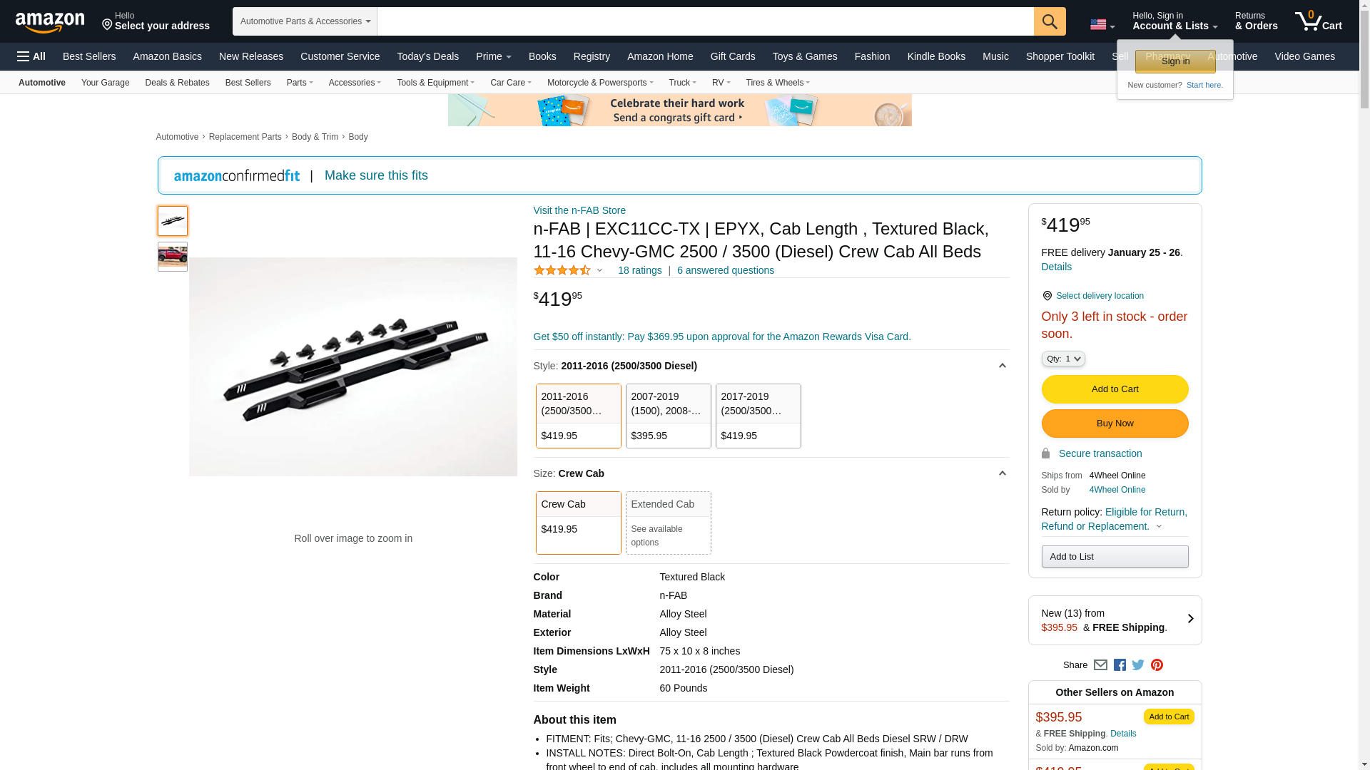 N-Fab EpYx Steps for Silverado/Sierra | Cab Length, Steel, Textured Black | EXC11CC-TX | Fits 2011-2016 Chevrolet Silverado/GMC Sierra 2500 / 3500 (Diesel) Crew Cab All Beds, SRW / DRW Diesel