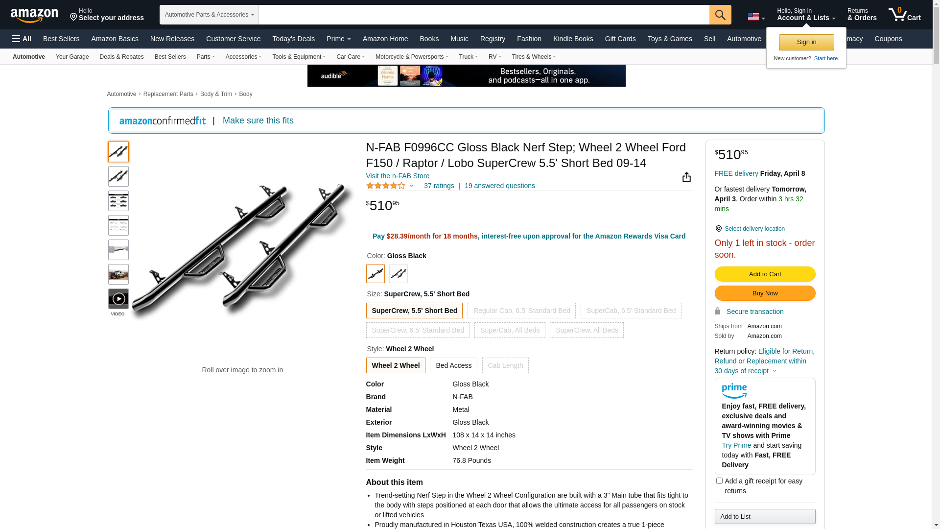 | Feature | 09-13 F150 QUAD CAB 8FT LB NERF STEP W/BED ACCESS STEP - BLACK POWDER COATED |
