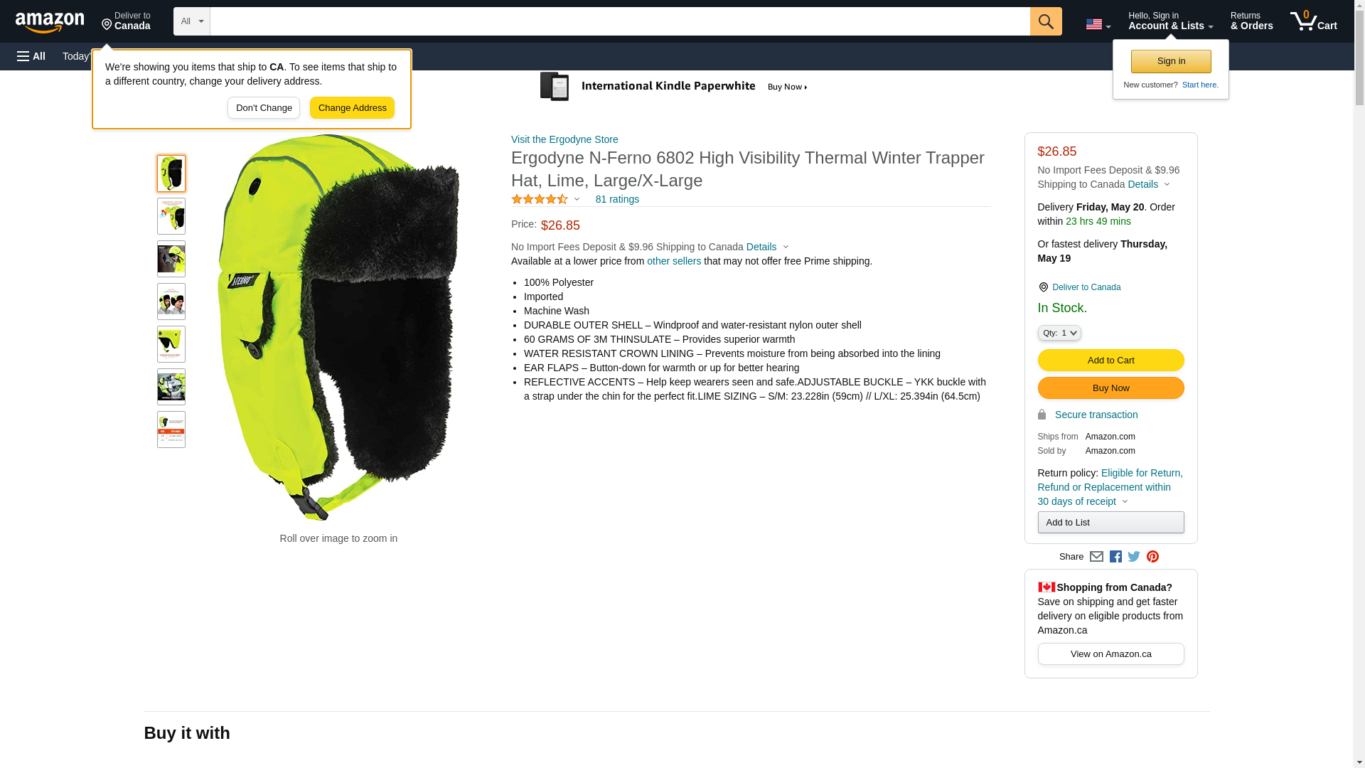 Ergodyne N-Ferno 6802 High Visibility Thermal Winter Trapper Hat, Lime, Large/X-Large