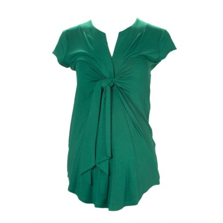 OLIAN Maternity Women's Front Knot Cap Sleeve Blouse Small Forest Green