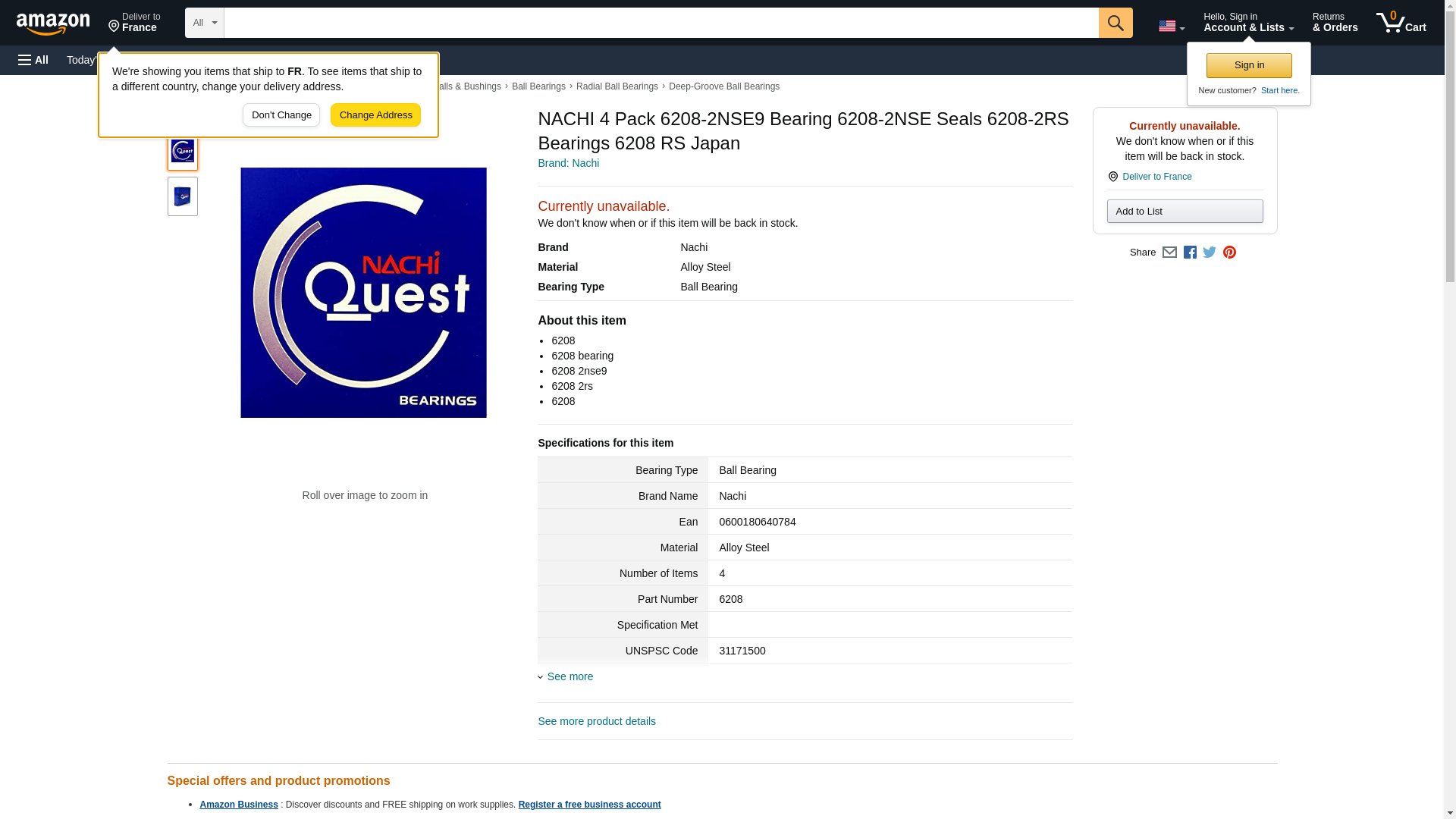 6208 Nachi New Single Row Ball Bearing
