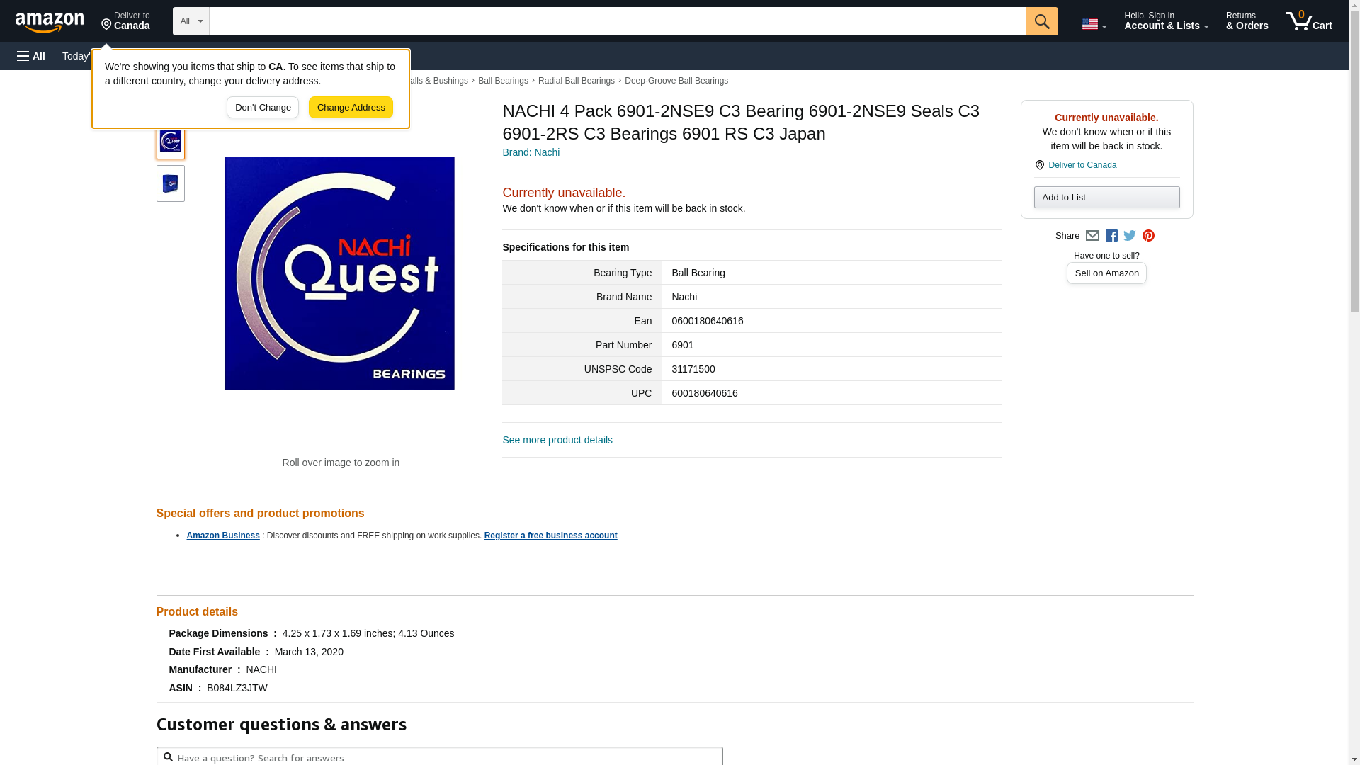 NACHI 4 Pack 6901-2NSE9 C3 Bearing 6901-2NSE9 Seals C3 6901-2RS C3 Bearings 6901 RS C3 Japan
