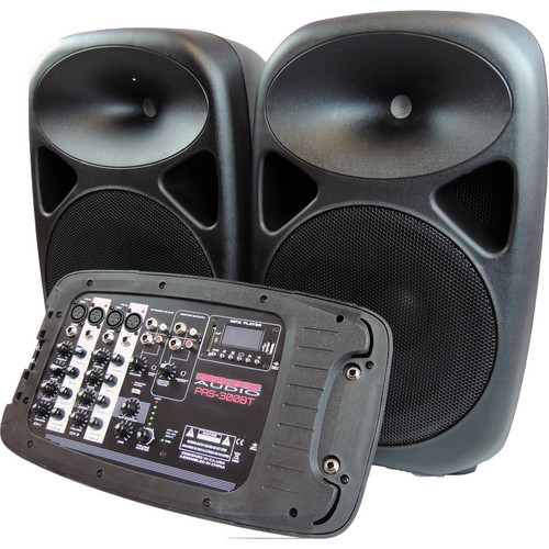 - Ultra compact portable PA system with 2 speakers and detachable 8-channel powered mixer
