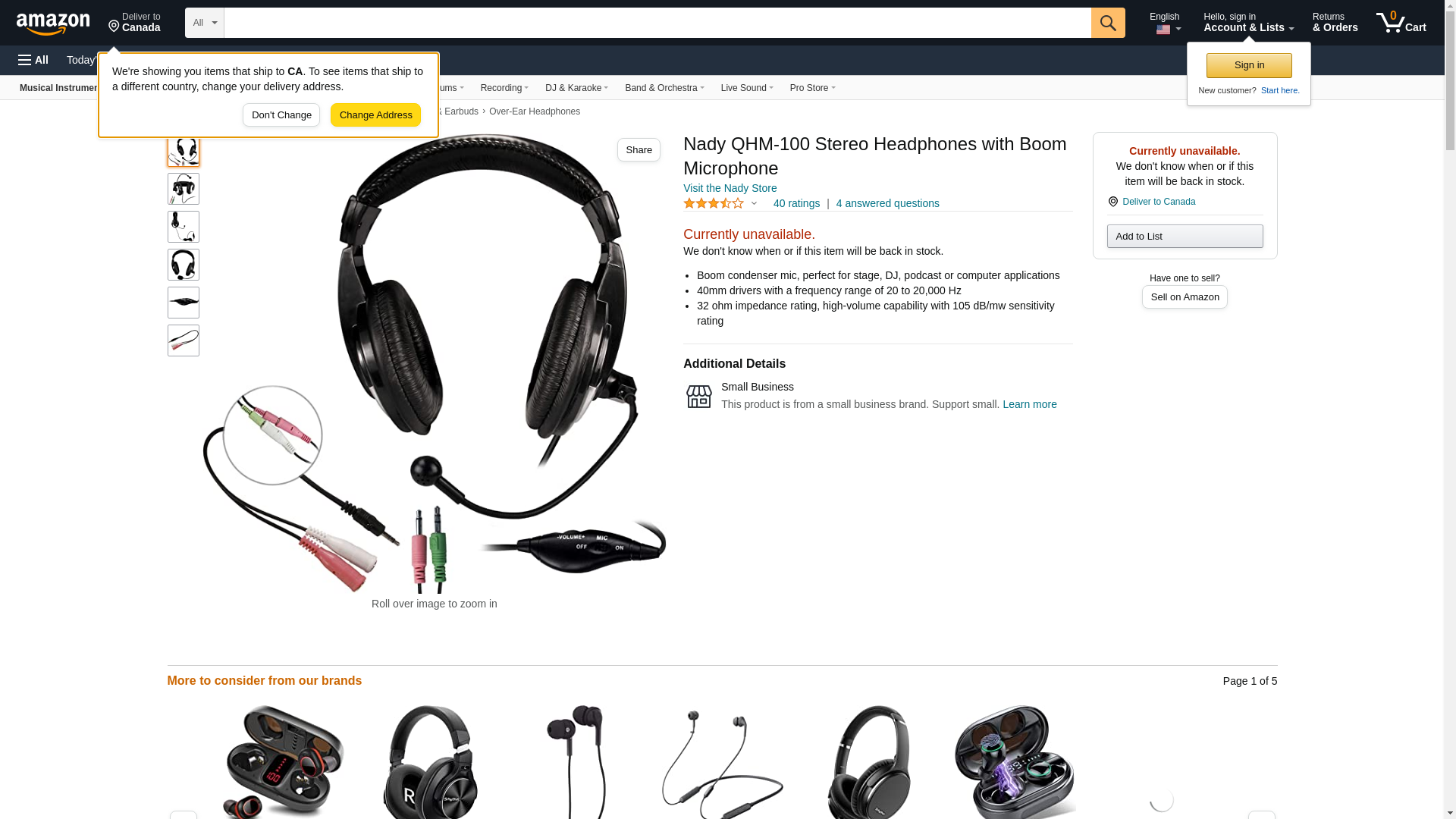 Nady QHM-100 Stereo Headphones with Boom Microphone