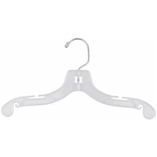 | Feature | Plastic Child/Infant Top Hangers - 12" Clear with Chrome Hardware |