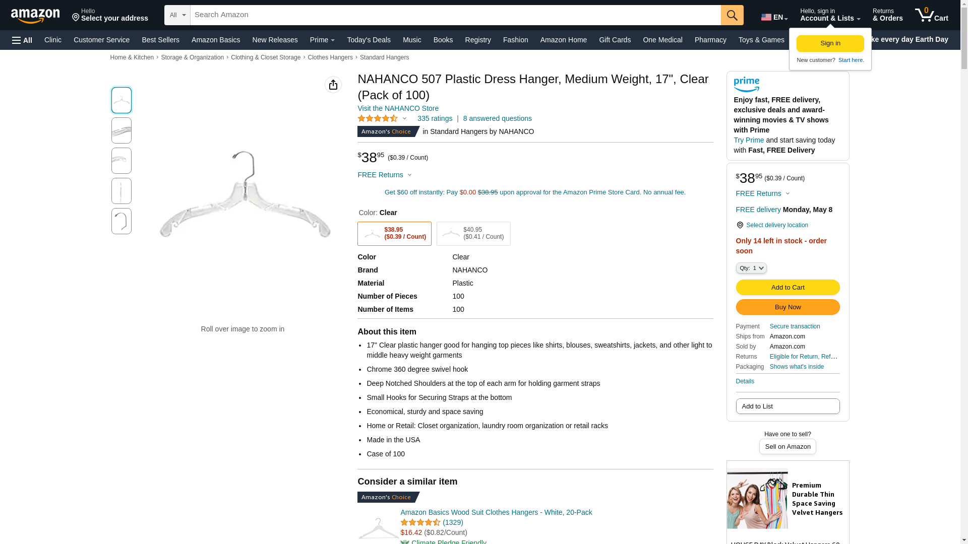 NAHANCO 507 Plastic Dress Hanger, Medium Weight, 17", Clear (Pack of 100)