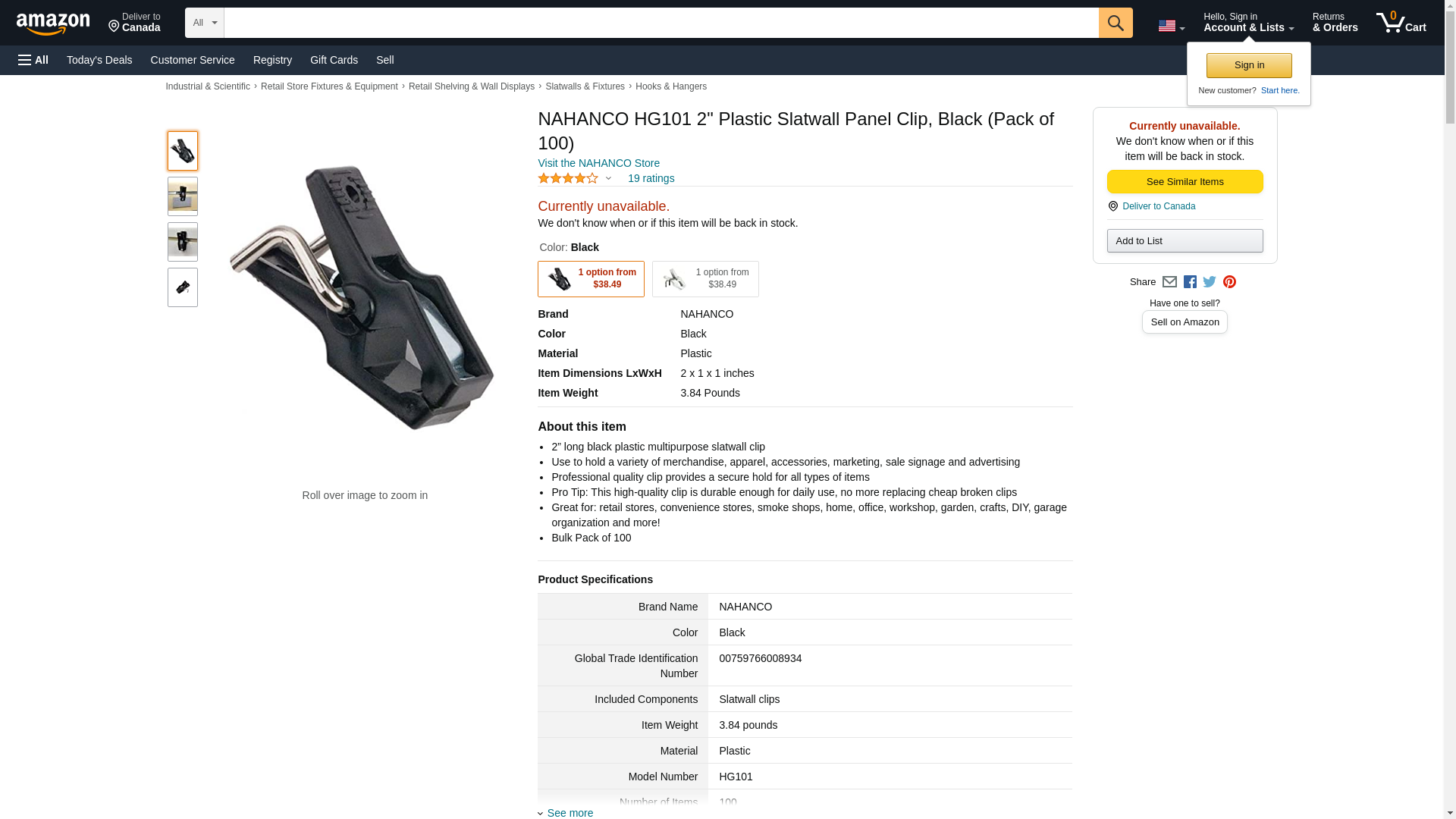 NAHANCO HG101 2" Plastic Slatwall Panel Clip, Black (Pack of 100)