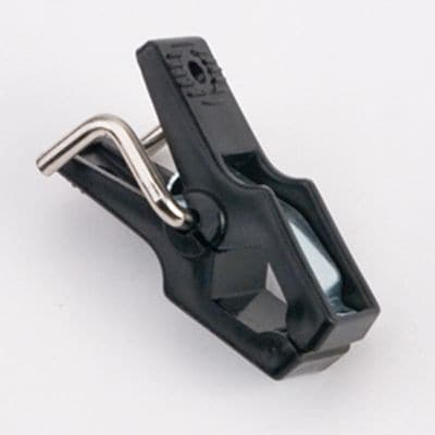 - 2” long black plastic multipurpose slatwall clip
