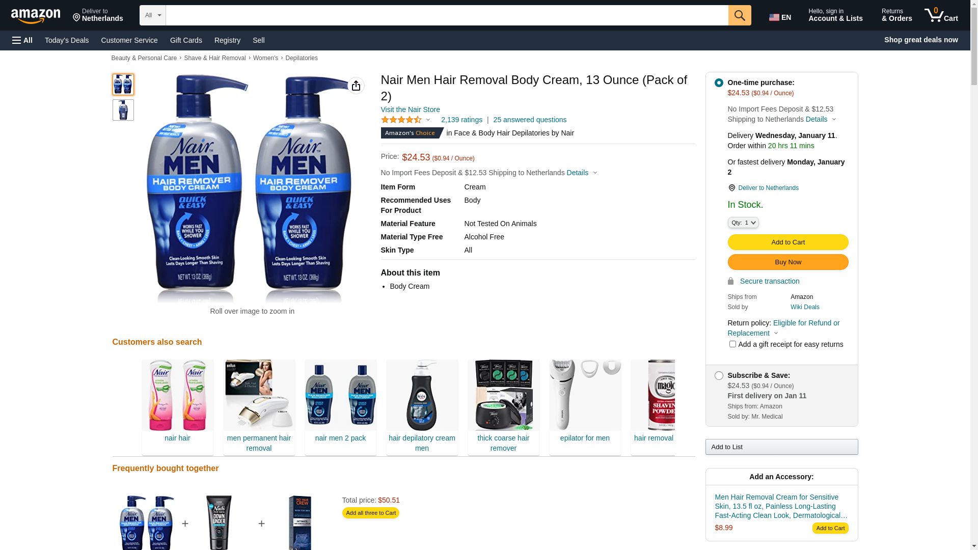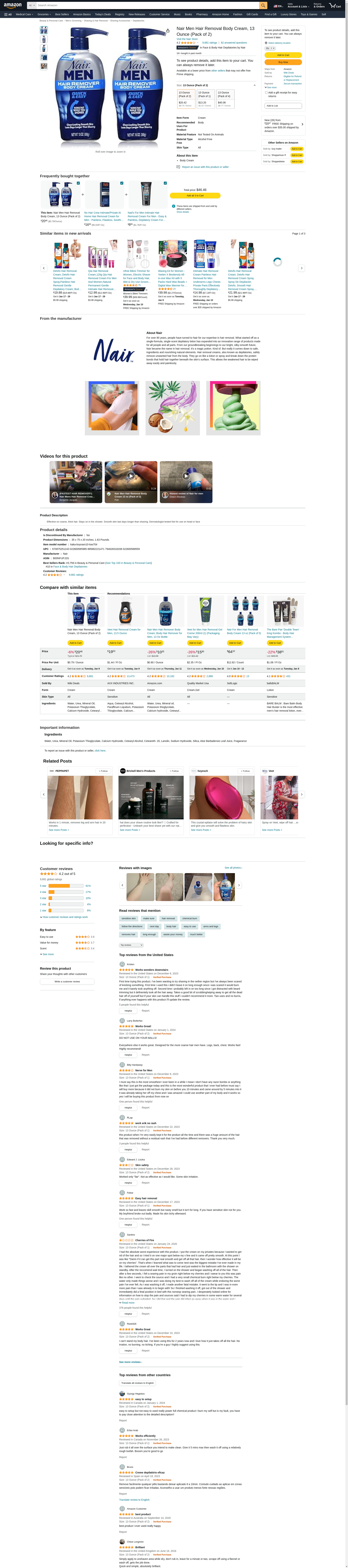 Nair Men Hair Removal Body Cream 13 oz (Pack of 2)