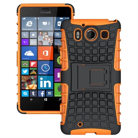 NAKEDCELLPHONE'S NEON ORANGE/BLACK GRENADE GRIP RUGGED TPU SKIN HARD CASE COVER STAND FOR AT&T MICROSOFT LUMIA 950 PHONE (AND UNLOCKED LUMIA 950 DUAL)