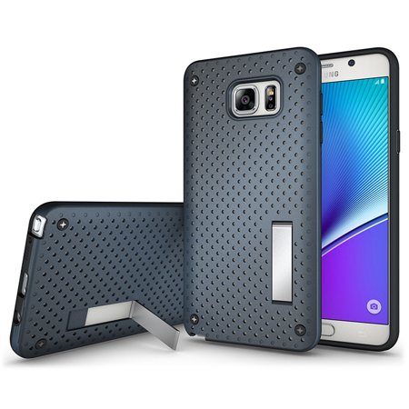 GALAXY NOTE 5 CASE, NAKEDCELLPHONE'S DARK NAVY AIR NET HEAT DISSIPATION CASE COVER STAND FOR SAMSUNG GALAXY NOTE 5 PHONE (SM-N920)