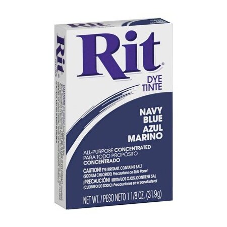 Rit, 1-1/8 OZ, Navy Blue Powder Dye, Dyes Clothing & Accessories, Rejuvenates Old Garments, Coordinates Home Decor, Hides Laundry Accidents & More, Works On Washable Fabrics Including Natural Fibers, Such As Cotton, Silk & Linen, Synthetics Such As Rayon, Nylon & Acetate, Enough For Approximately 1 LB Dry Weight Or 3 Yards Of Medium Weight Fabric.