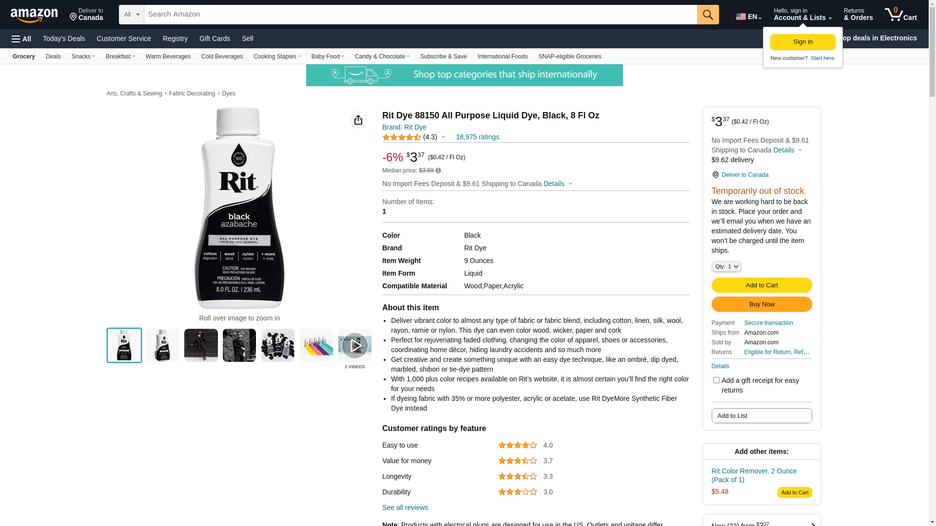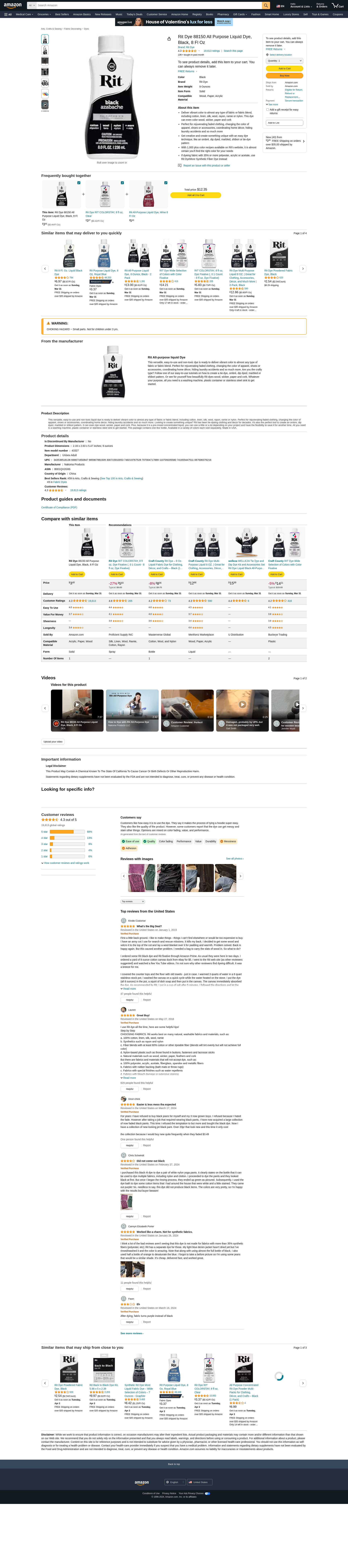 Rit, 8 OZ, Black Liquid Dye, Dyes Clothing & Accessories, Rejuvenates Old Garments, Coordinates Home Decor, Hides Laundry Accidents & More, Works On Washable Fabrics Including Natural Fibers, Such As Cotton, Silk & Linen; Synthetics Such As Rayon, Nylon & Acetate, Enough For Approximately 1 LB Dry Weight Or 3 Yards Of Medium Weight Fabric.