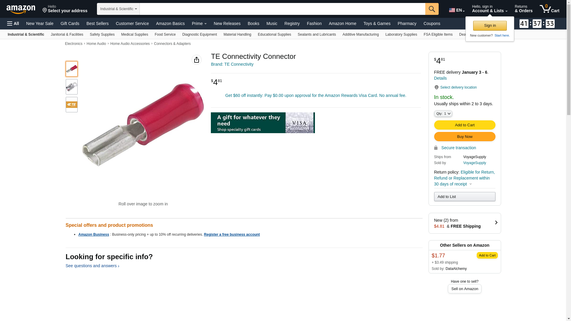 | TE Connectivity | 165619-2 | 1 | 25569 | 1 | 1 @ $0.93, 10 @ $0.85, 25 @ $0.79, 50 @ $0.76 |