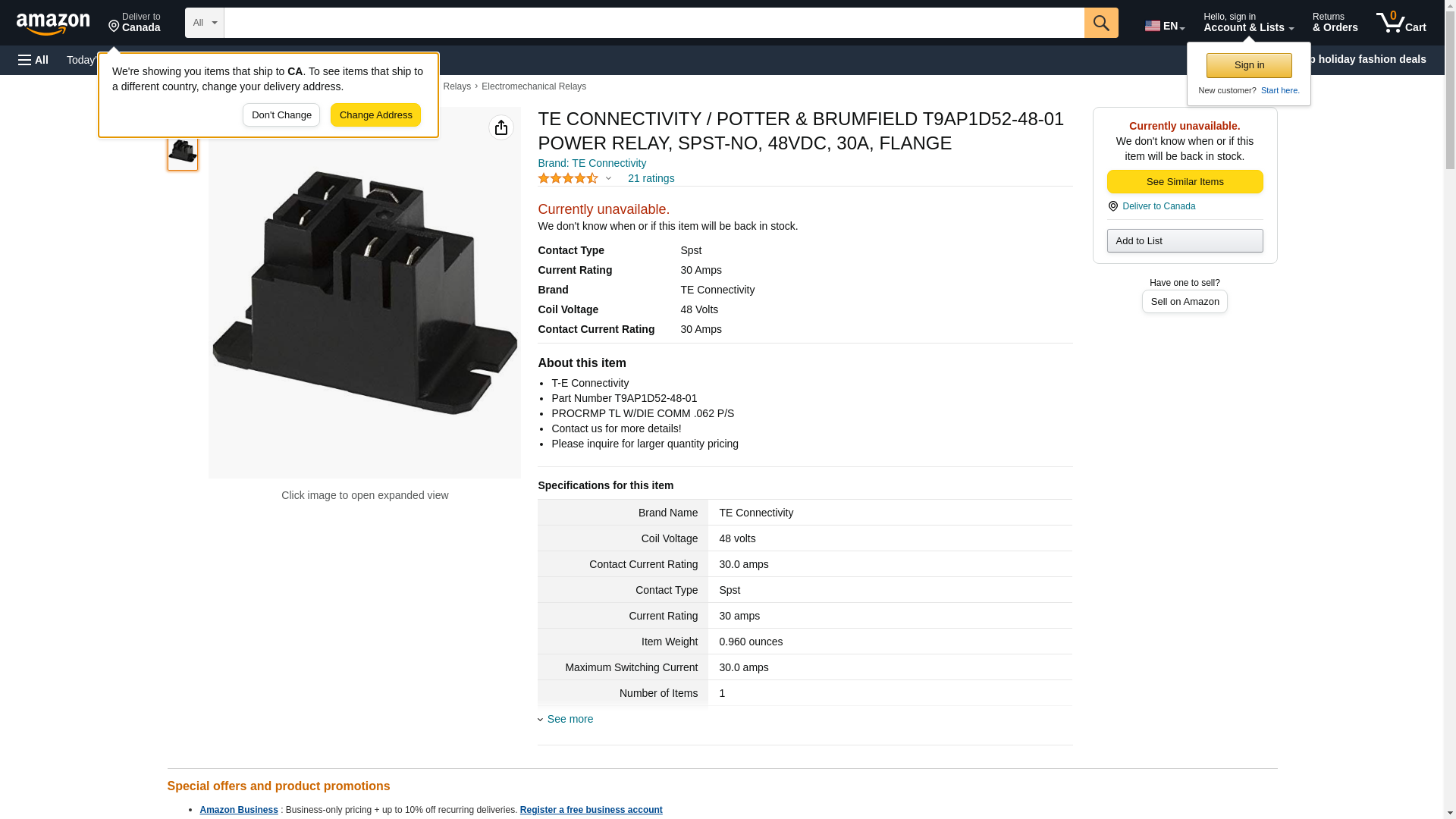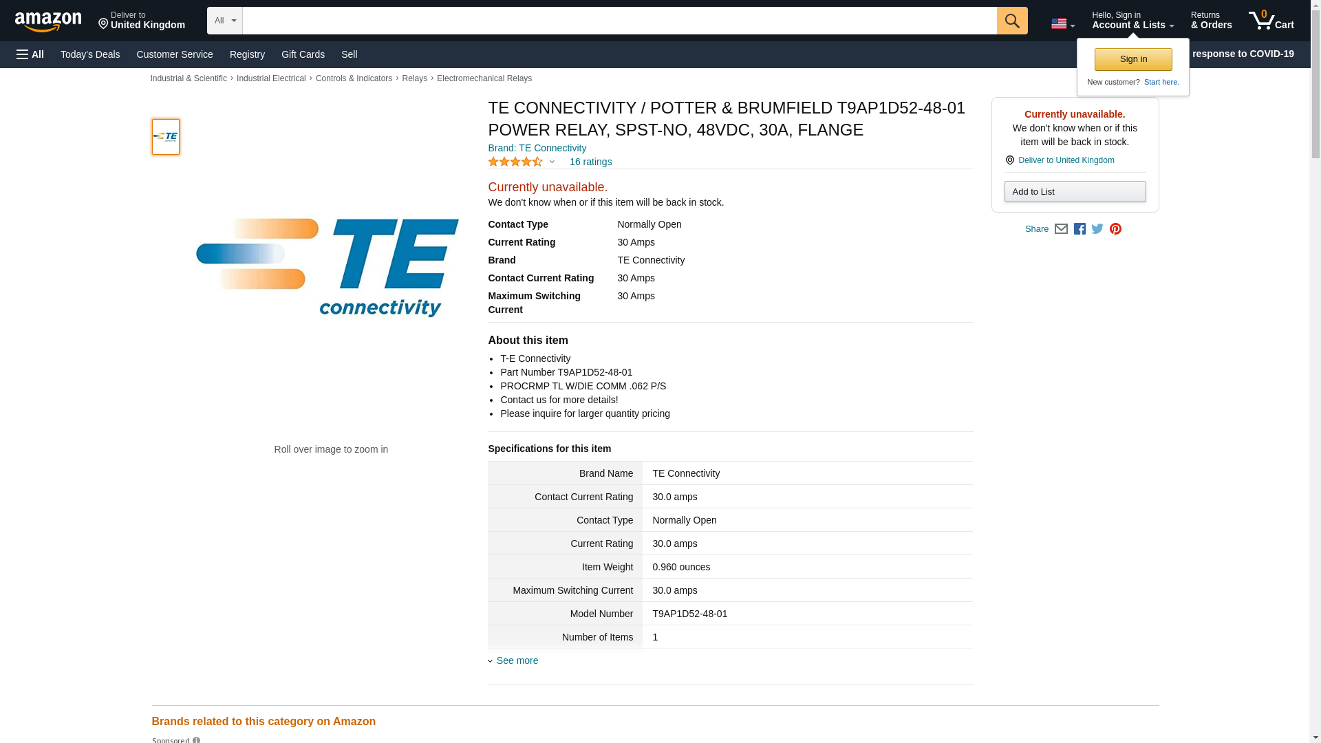 | Waldom | TE CONNECTIVITY POTTER-BRUMFIELD T9AP1D52-48-01 | 15 | 1 | 15 @ $4.92, 60 @ $4.73, 250 @ $4.54, 650 @ $4.36 | |