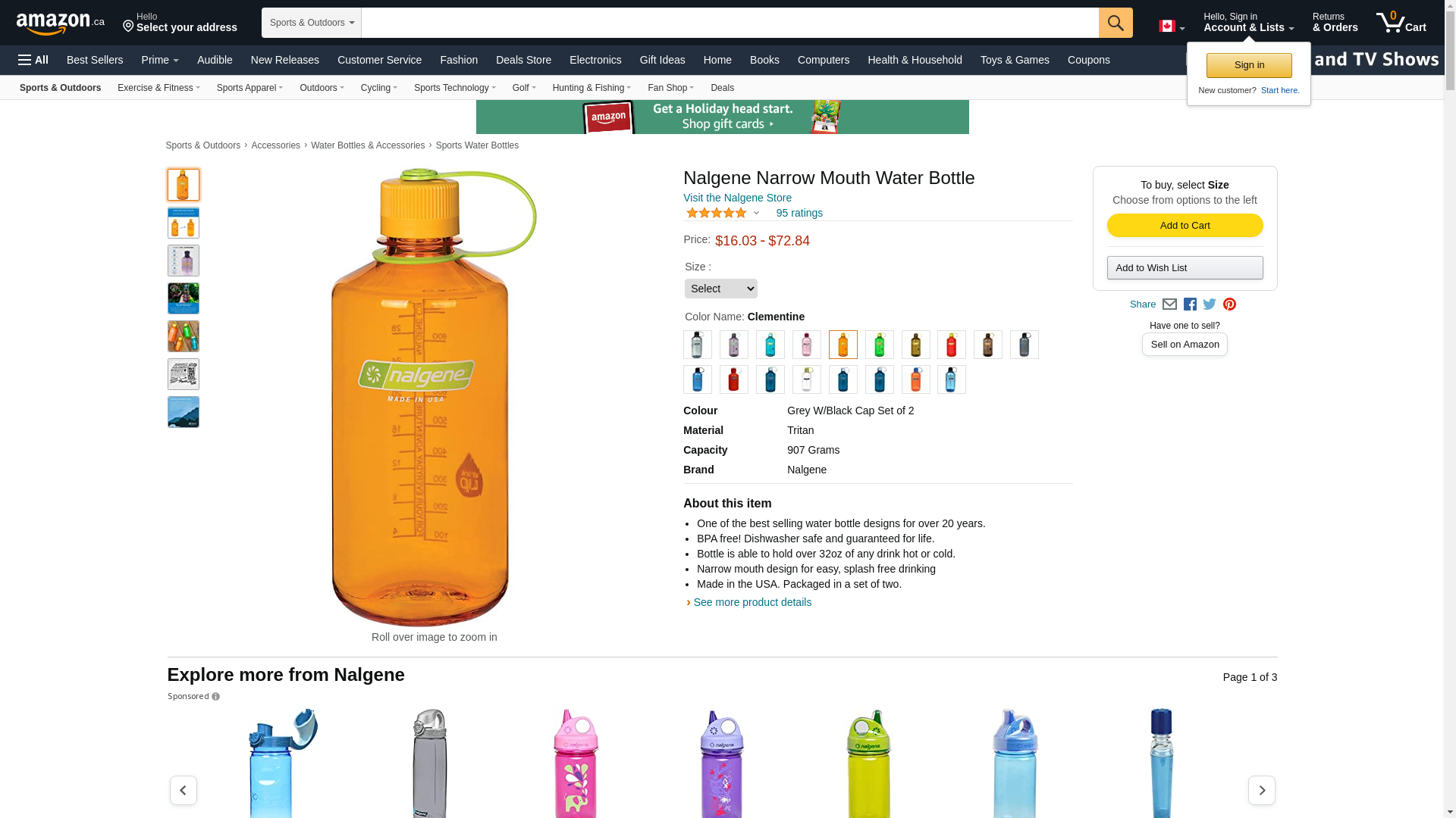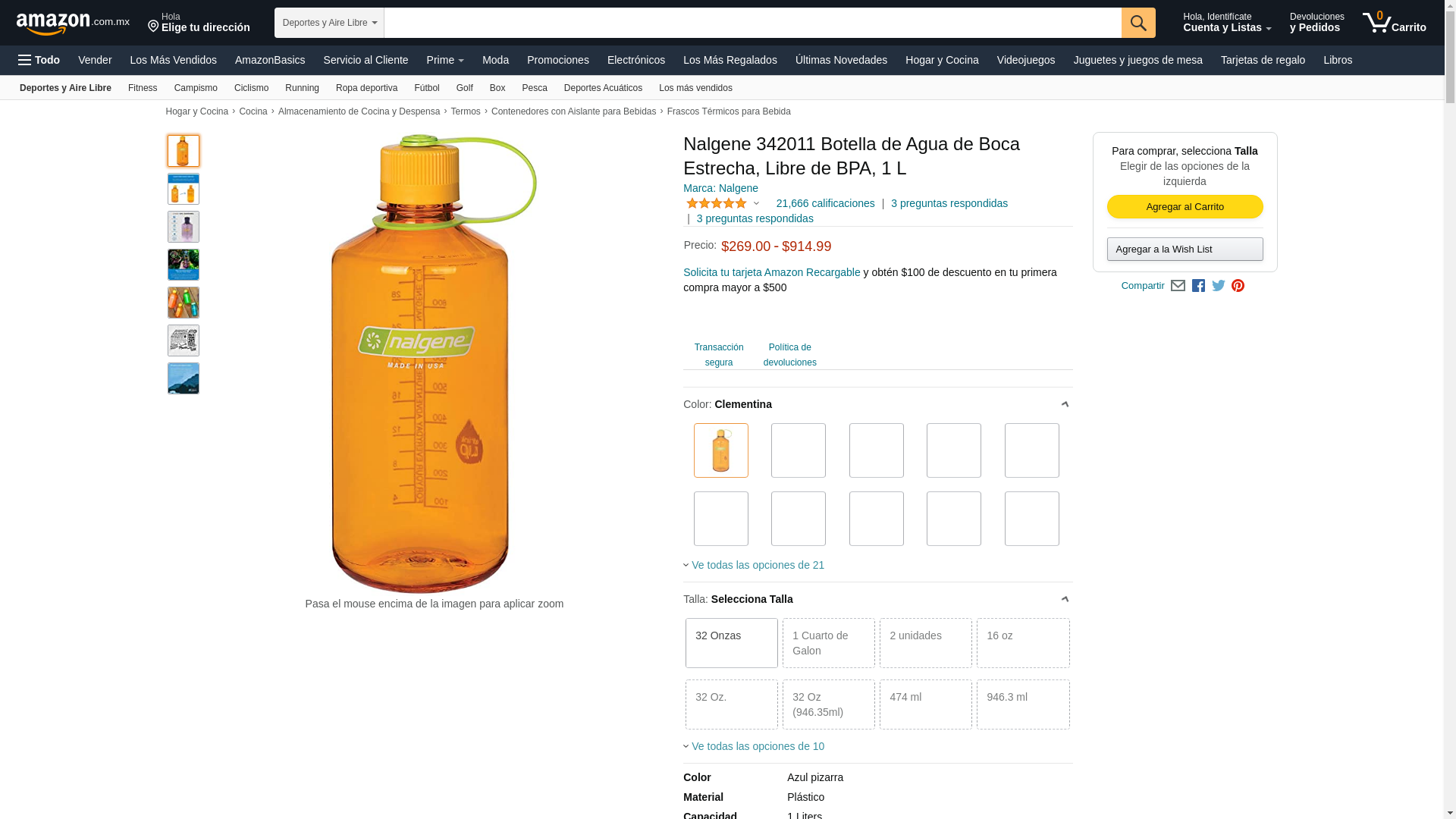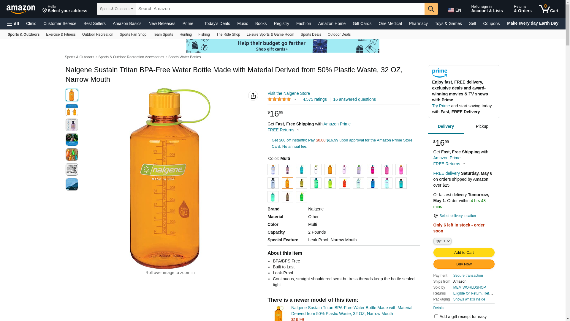 Nalgene Tritan Narrow Mouth BPA-Free Water Bottle, Clementine, 32 oz