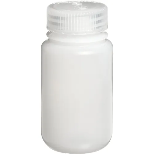 Nalgene - 125ML Wide-Mouth High Density Polyethylene (HDPE) Sample Bottle (72 per Case) Closurre Size 38MM, Translucent HDPE. Wide mouth allows easy retrieval of grab samples and reduced turbulence when filling. General-purpose, single-use sample bottle