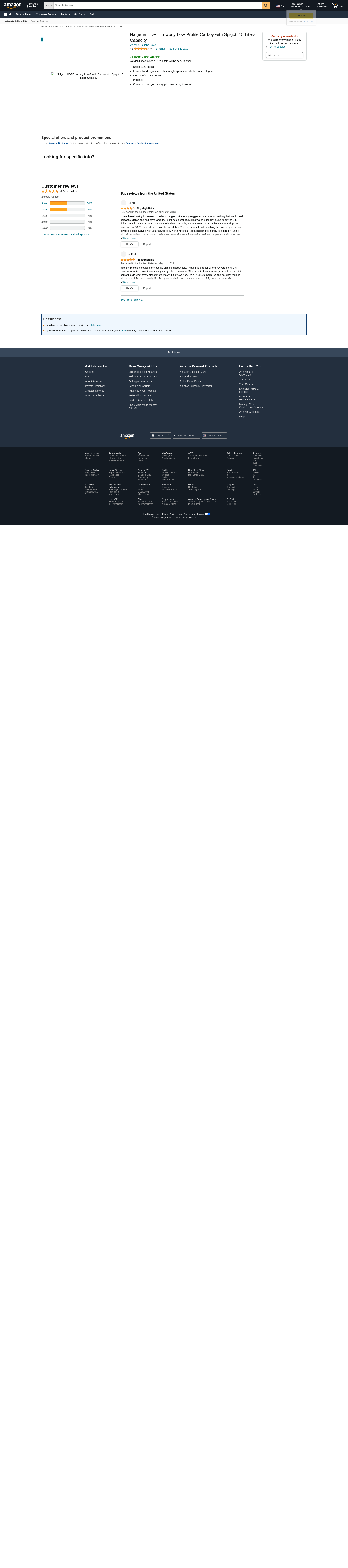 Nalge Nunc Lowboy Carboys with Spigot, High-Density Polyethylene, NALGENE 2323-0015, Case of