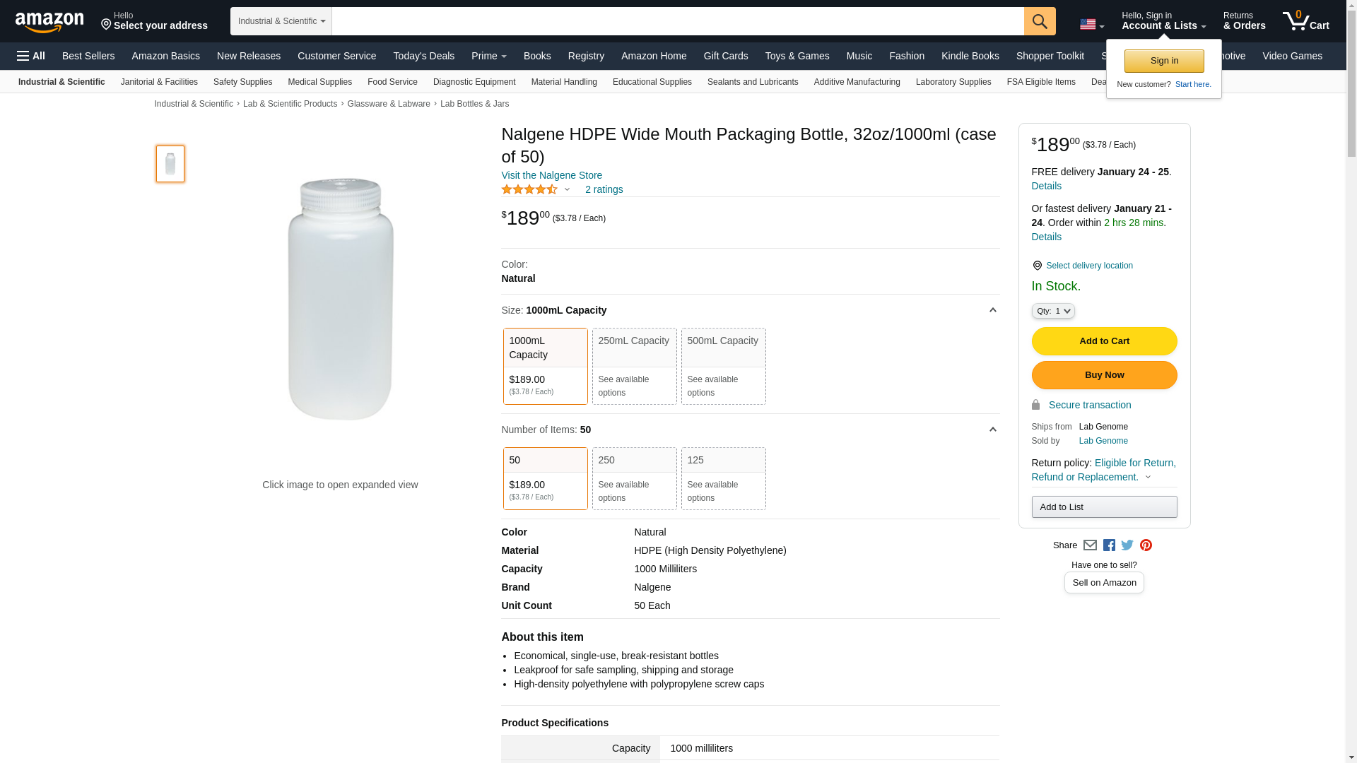 Nalgene HDPE Wide Mouth Packaging Bottle, 32oz/1000ml (case of 50)